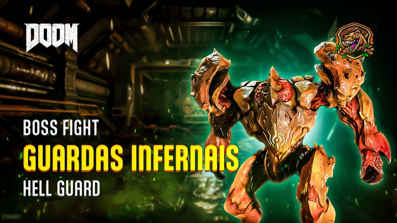 A luta contra os Guardas Infernais é dividida em duas partes. Na primeira fase, você enfrentará apenas um guarda, que é o mais forte devido ao seu escudo. O padrão inicial de ataque envolve avanços e golpes de sua arma, momentos em que o escudo é abaixado, permitindo que você ataque. Use armas poderosas, como a Superescopeta ou a Escopeta de Combate, e ataque sempre que o escudo for baixado.